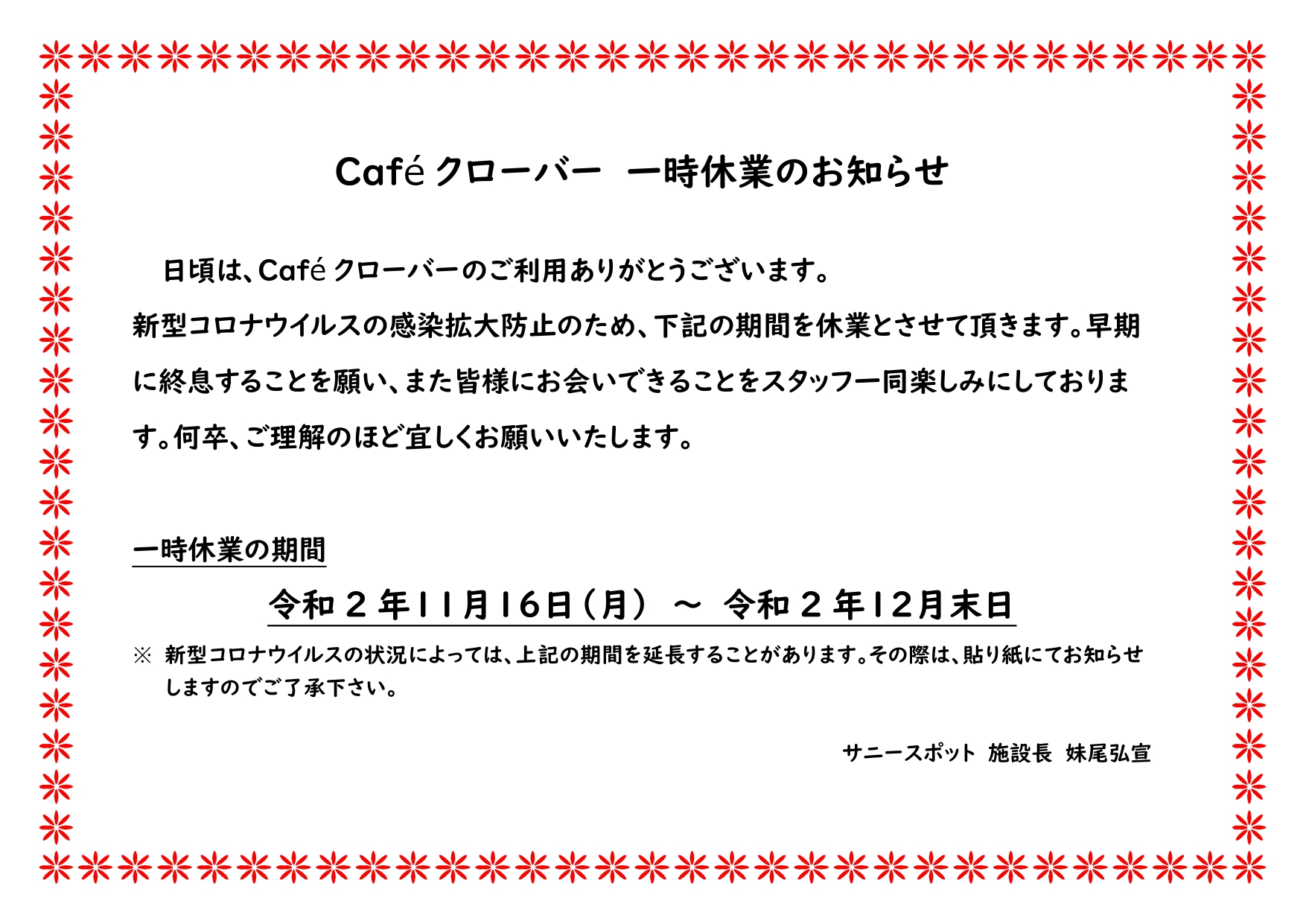 Caféクローバー一時休業のお知らせ_page-0001 | 社会福祉法人つながり-大阪府高槻市の地域福祉サービス・就労支援